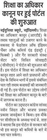 शिक्षा का अधिकार कानून पर हुई पोर्टल की शुरुआत